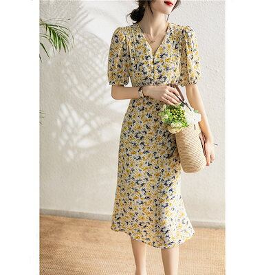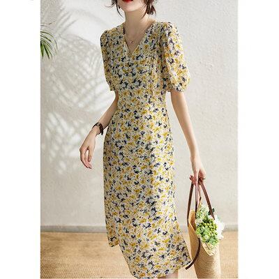 ロングワンピース レディース 30代40代ワンピース 秋冬新作 長袖ワンピース きれいめ 花柄ワンピース シフォン フレアスカート 通勤リネンワンピ