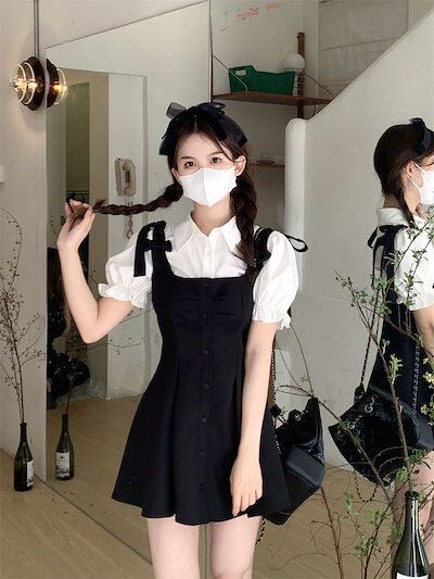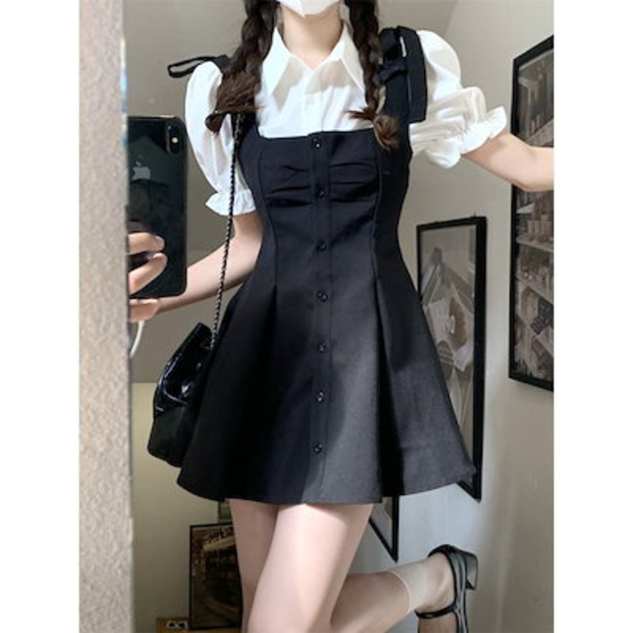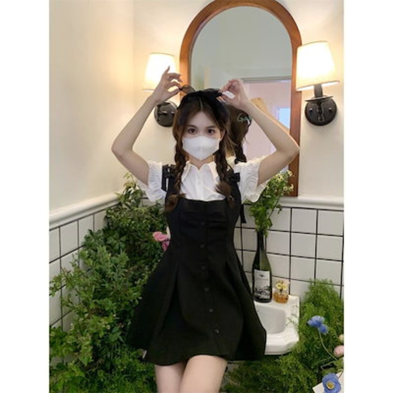 ストラップスカートドレスツーピーススーツ 制服 かわいいロリータロリータガーリーコスプレロリータゴスロリータメイドスーツ