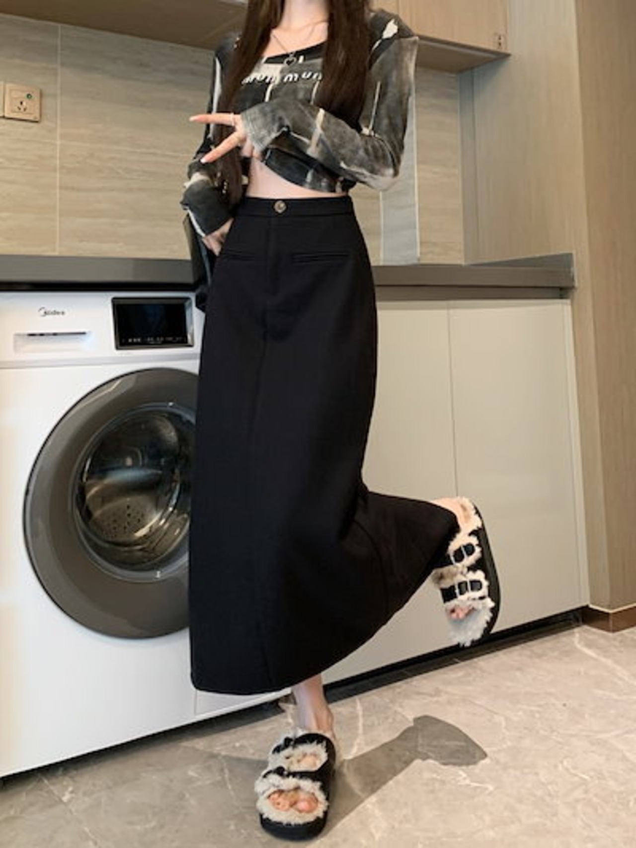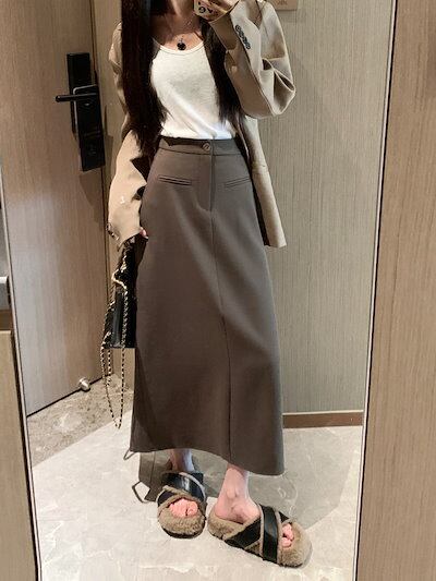 ハイウエストで着やせしたデザイン感ストレート半身スカート女性秋のグレー百合ミニレトロなミディアムスカートヒップを包むスカート