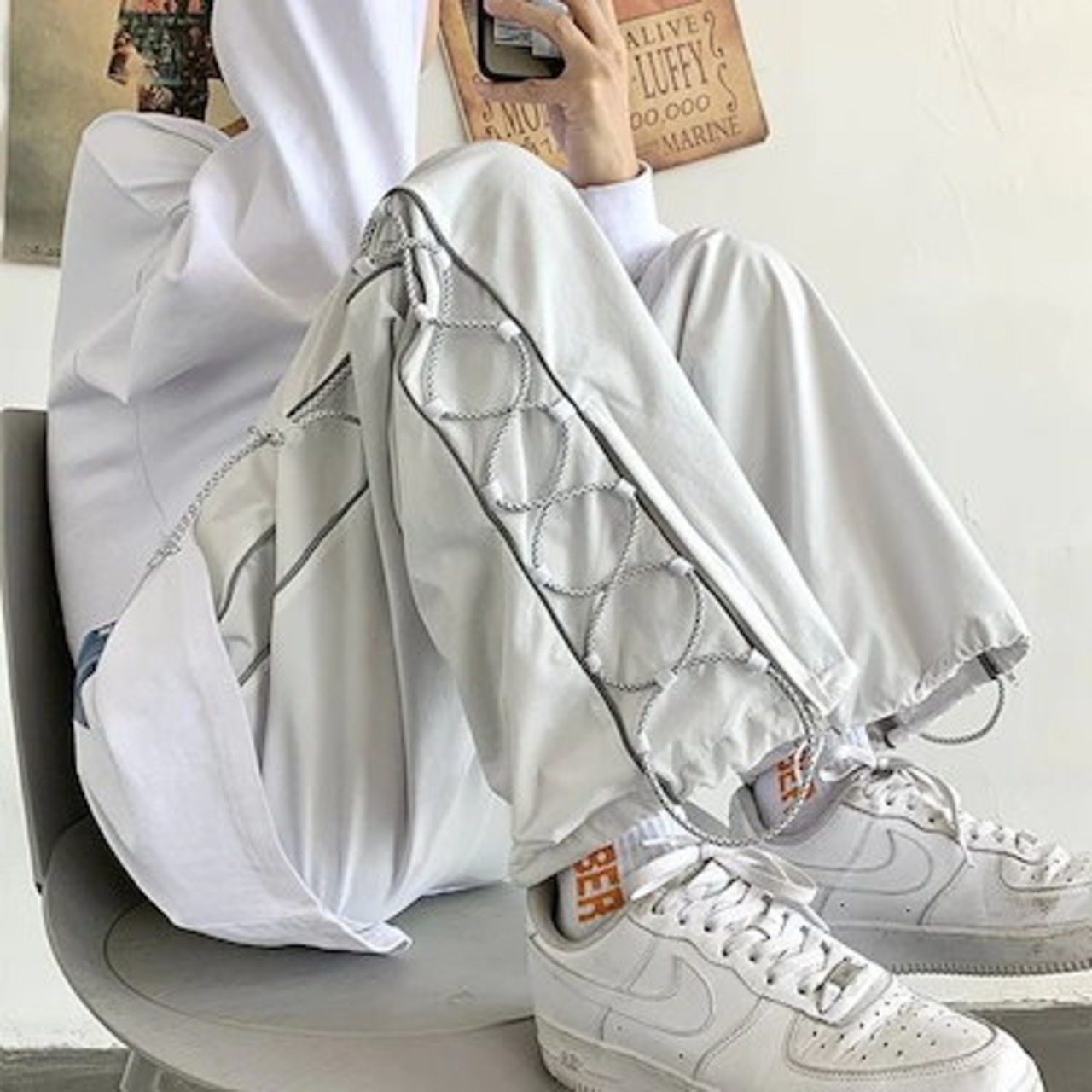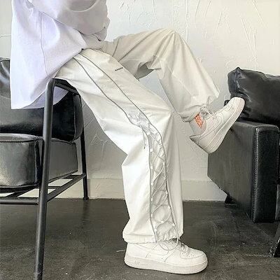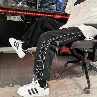 ロングパンツ ゆるっとストリート ジャージ パンツ サイドライン レースアップ スポーティー ユニセックス レディースカジュアルカーゴパンツ