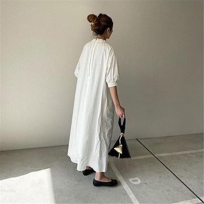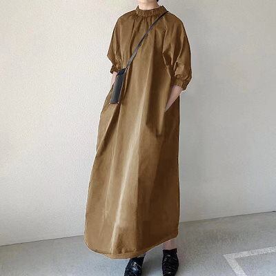 韓国ファッション 百掛け リネン素材トップス半袖 ワンピースドレス マキシ丈ワンピ なロングワンピース ロング丈 半袖 リネンワンピース ゆったりスウェット