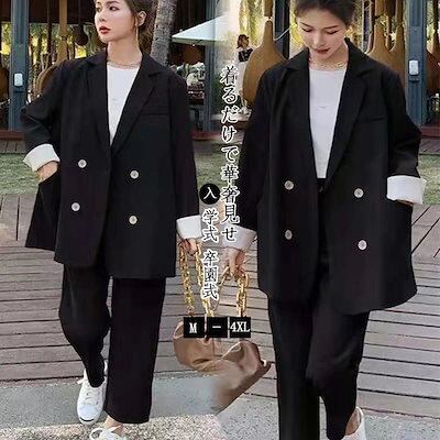2024新作 二点セット レディース スーツセット 春アウター ブラック レディースファッション セットアップ ママスーツ 卒業式パンツスーツ スーツジャケット 入園式 入学式 卒園式