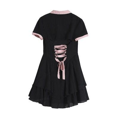 可愛いワンピース ウエスト引き締め 着痩せ シャツワンピース リボンワンピース