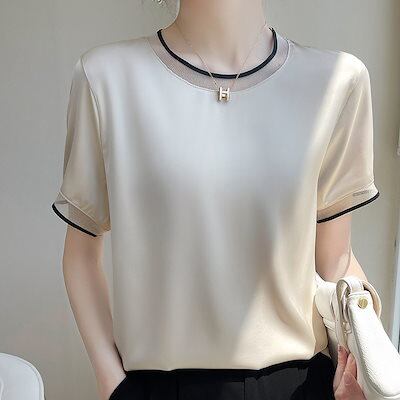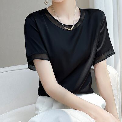 tシャツ 韓国ファッション 2024春夏新作 百掛け 気品 ?トップス チュール 切り替え tシャツ 半袖 レディース ブラウス?Tシャツ