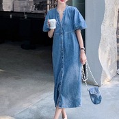 ワンピース レディース 40代 キレイめ マキシ丈ワンピース デニムスカート デニムせ ドレス オシャレ薄い 夏 レディースリネンワンピ