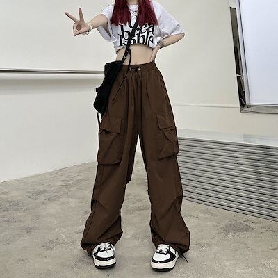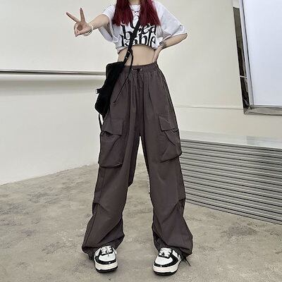 ワイドパンツ 韓国ファッション 着痩せ ゆったり 百掛け カーゴパンツ ハイウエスト ワイドパンツ レディース ロングパンツ
