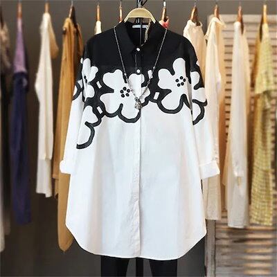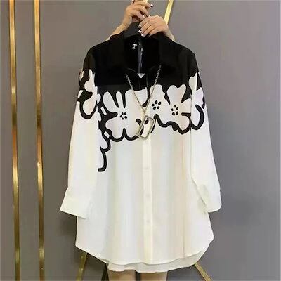 2024 春夏シャツブラウス 新作 ロングシャツ ブラウス 韓国ファッション シャツ トップス ゆったり 快適性 レディース