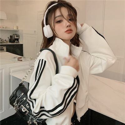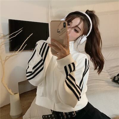 2024 秋 韓国 かわいい レディース アウター ブルゾン お出かけ ブラック ライトカーキ アウター長袖セクシートップスサイド冬カジュアルファッション系お出かけフル丈トラック