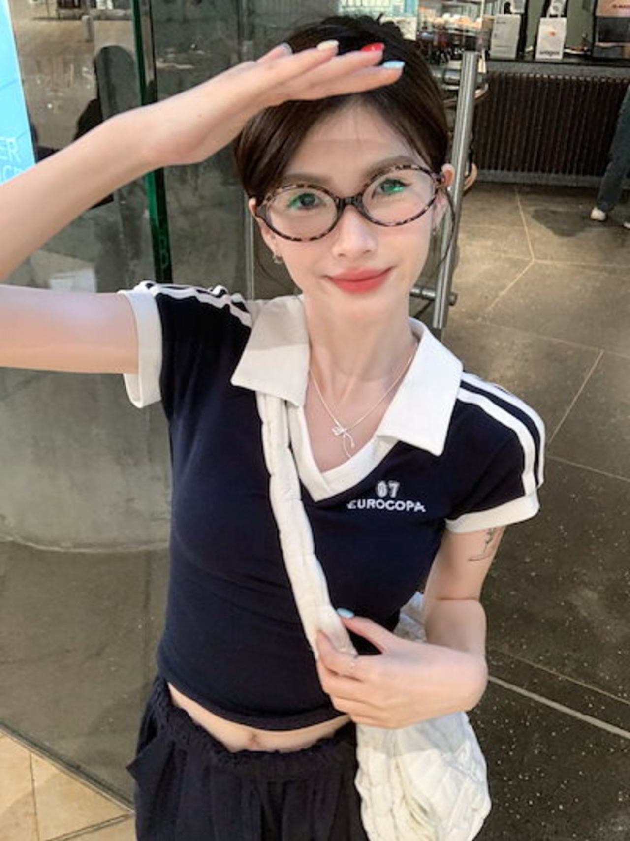 2024 春夏トップス 大人可愛い半袖 Tシャツ 韓国 ラウンドネックロゴスリム かわいいへそ出し ショート おしゃれスリーブ カジュアルサイドコーデ丈 ファッション系レディースストリートお出かけ T
