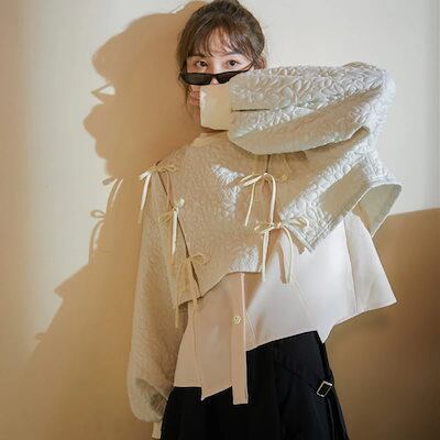 2024 秋冬 トップス ?トレーナー かわいい カジュアル花ラウンドネックT シャツ女っぽ ショートプルオーバーファッション系 きれいめスリーブ 大人っぽ 上品 パーカー フェミニンフレンチお出かけ