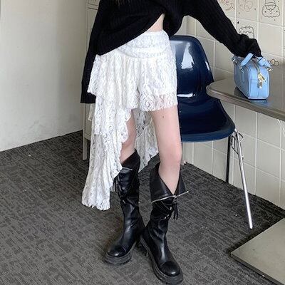 2024 春夏 スカート ミニ丈 透かし彫り ハイウエスト 脚長効果 美脚効果 細見え ゆったり かわいい韓国 レディース キュート 春 ファッション カジュアル お出か