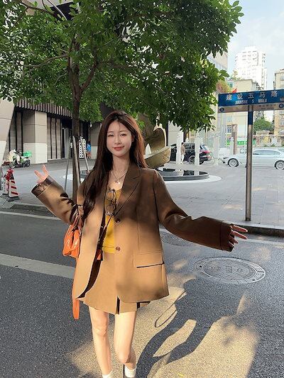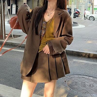 2024秋冬2点セット アウター ジャケット テーラードカラー 長袖 スカート ミニ丈 秋 茶色 おしゃれ かわいい 韓国ファッション レディース お出かけ