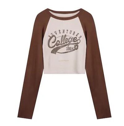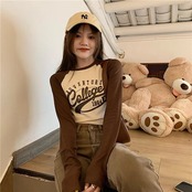 2024春夏 トップス 長袖 可愛い おしゃれ フィット ラウンドカラー 重ね着丈 スリーブ 女っぽ Tファッション フェミニン きれいめ 色っぽ プリント