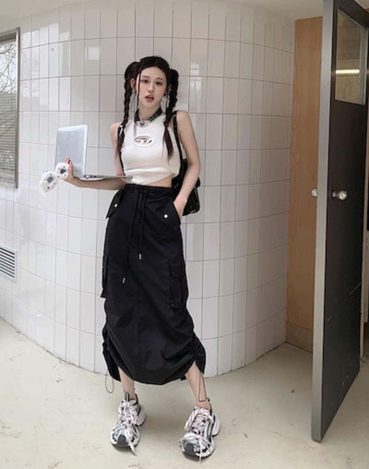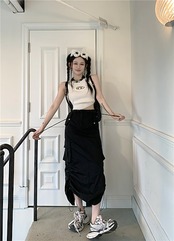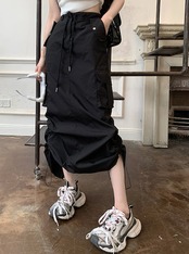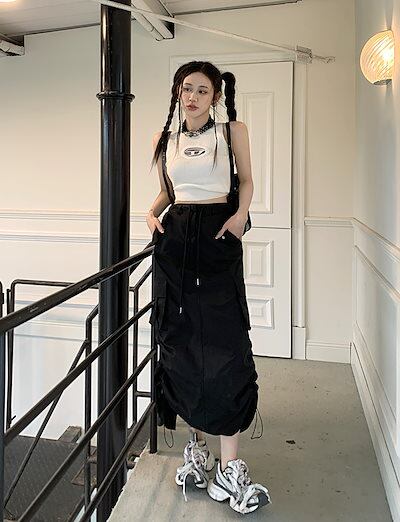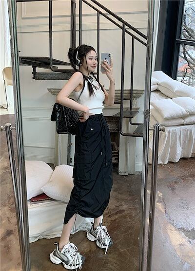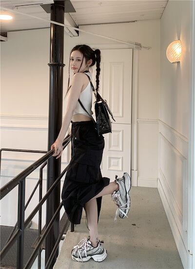 2024 春秋 スカート ロング丈 ポケット ハイウエスト マキシロング スカート ロング スカート 美脚効果 脚長効果 細見え 夏 おしゃれ かわいい サイド韓国系ファッション レディース お出かけ
