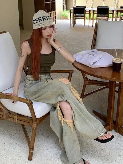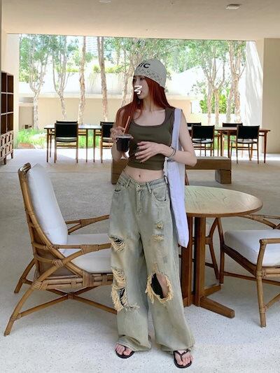 2024春夏 デニムパンツ ボトムス ジーンズ ファッション系スタイル ゆるダボ ジーンズ シルエット加工 カジュアル メンズライク
