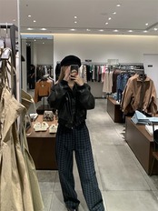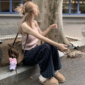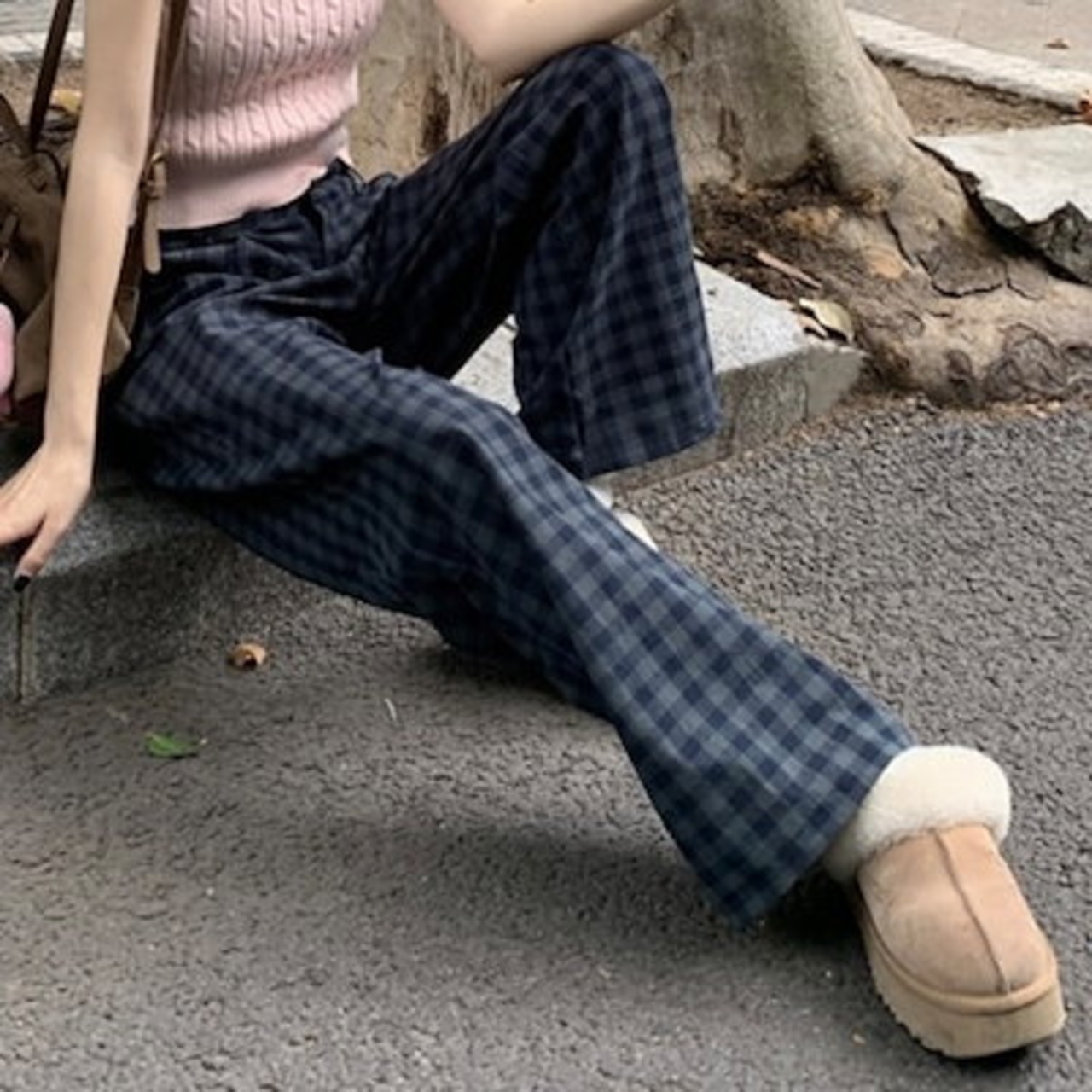 2024 春夏パンツ ワイド ストレート ハイウエスト 脚長効果 美脚効果 細見え チェック柄 レトロ 春 黒 カジュアル おしゃれ かわいい 韓国ファッション レディース お出かけ