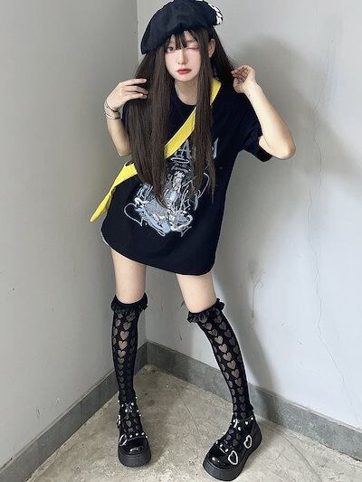 2024 夏 韓国 トップスかわいい Tシャツ ロング丈 ファッション半袖スリムフィット サイドファンタジーシルエット ゆったり 休日レディースサイズ韓国系_おしゃれ カジュアルメンズライクT