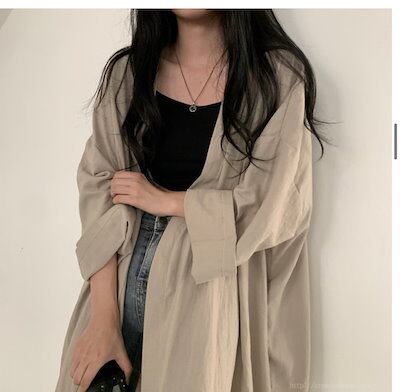 2024 春夏シャツカーデ カーディガン ロングシャツ カラーシャツ UV対策 ルーズ オーバーサイズ 長袖 ゆったり BF風 シンプル カジュアル 韓国ファッション