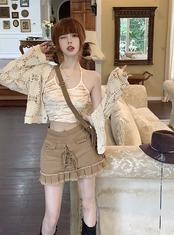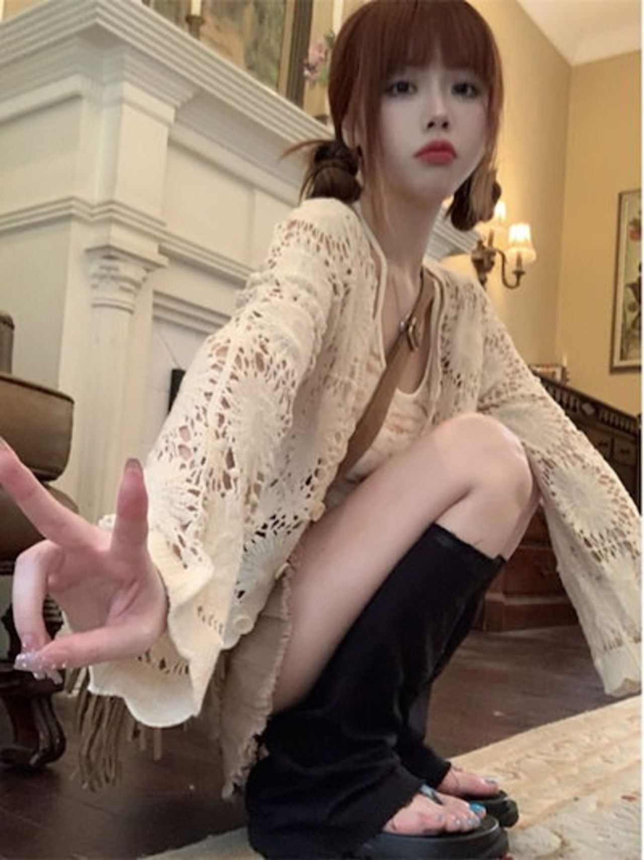 2024 夏 韓国 ショート丈 薄手 カーディガン トップス 長袖 紫外線対策 UVカット冷房羽織り加工 きれいめ ライトニット オフィス OLネックカジュアルフレンチフェミニンファッション韓国レディ