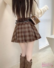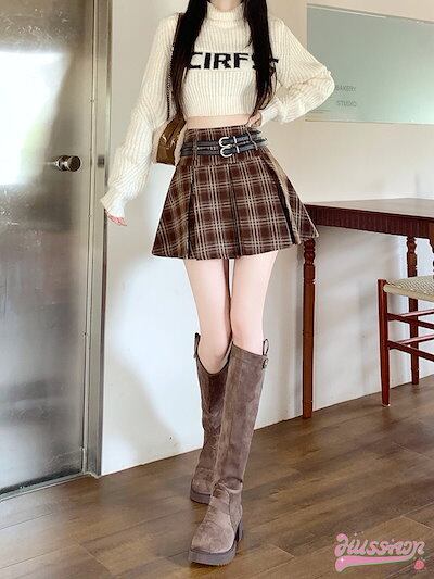 スカート ミニ丈 プリーツ 台形 Aライン チェック ハイウエスト 脚長効果 美脚効果 細見え 秋 かわいい おしゃれ カジュアル 韓国ファッション レディース お出かけ