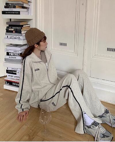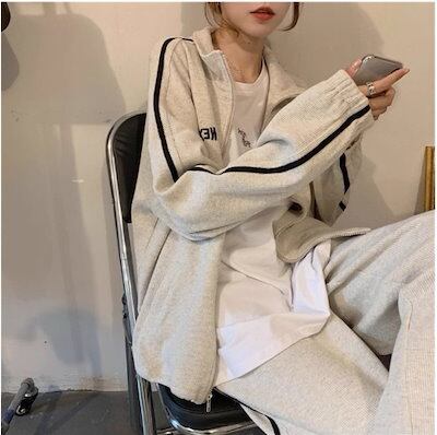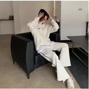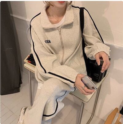 2024 春秋 2点セット トップス お出かけ 羽織り ショート丈 セットアップ フルラウンドヘム ルーズ サイド ボトムス ストレート系冬 ゆったり サイズワイドシルエット リラックストラック