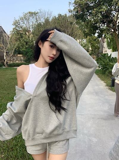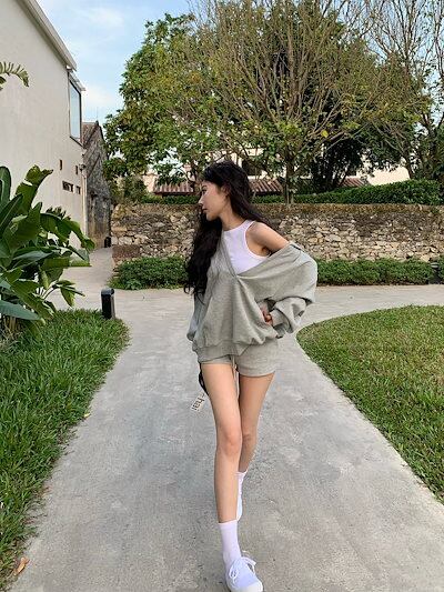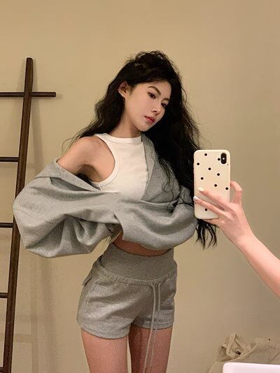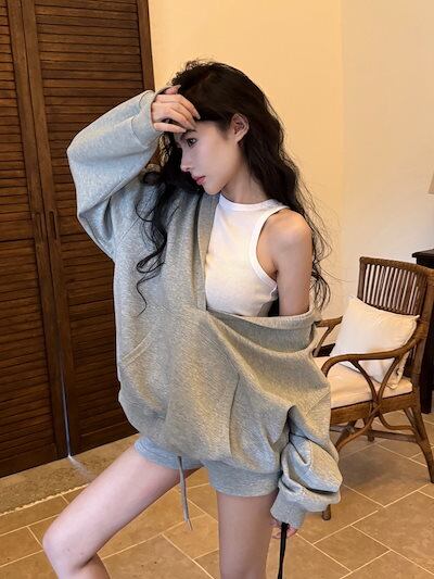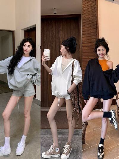 2024 秋冬トップス韓国 パーカー フード付き 羽織りレディース女っぽきれいめ大人っぽ上品 サイズゆったりカジュアルハーフショートパンツシルエットスリーブかわいいファッション系春3点セットアップ