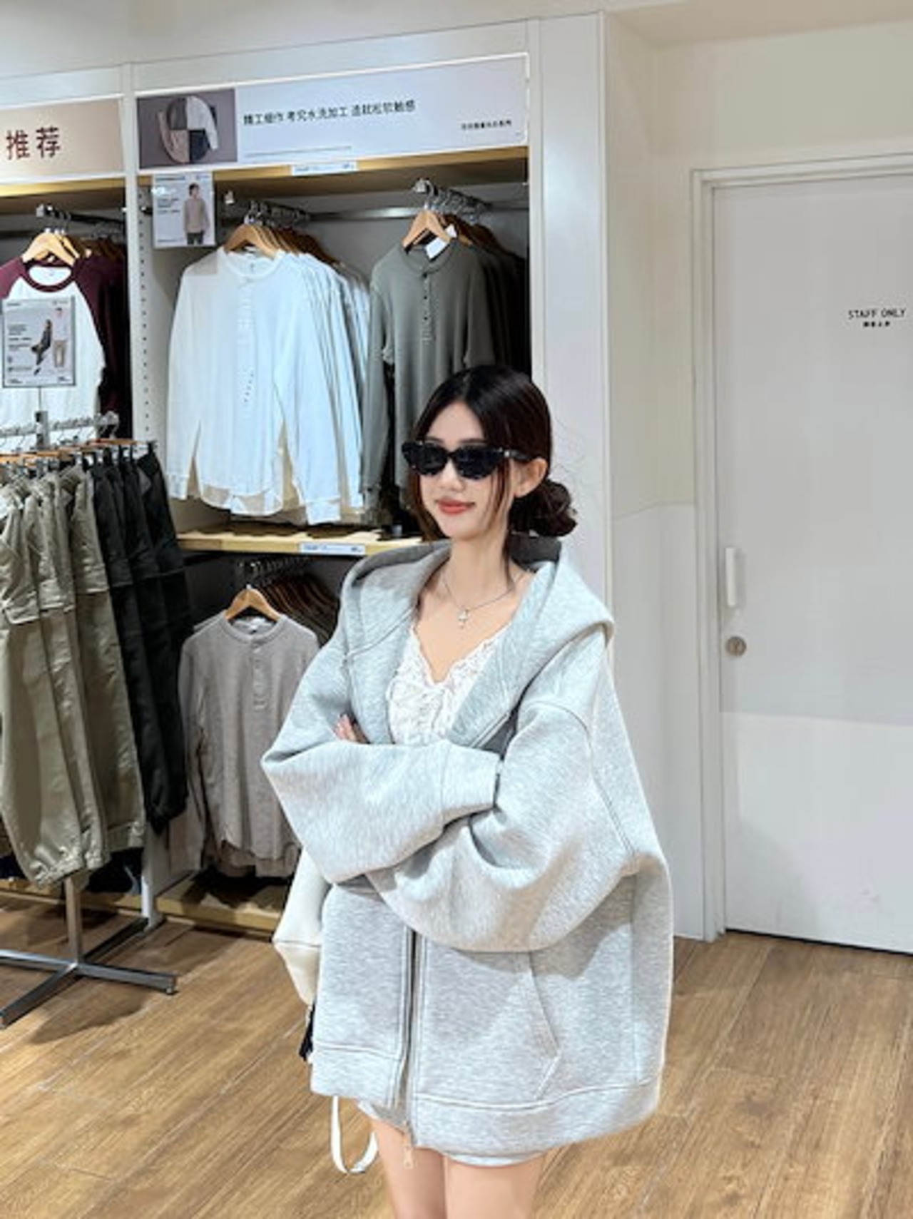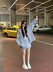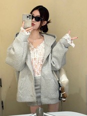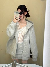 2024 秋冬トップス パーカー フード付き 羽織りミニスカート丈 きれいめ 大人っぽ 上品 サイズゆったりカジュアルトラックストリートシルエットスリーブかわいいファッション系春3点セットアップ