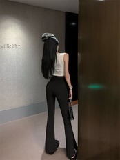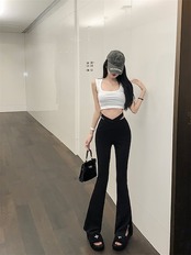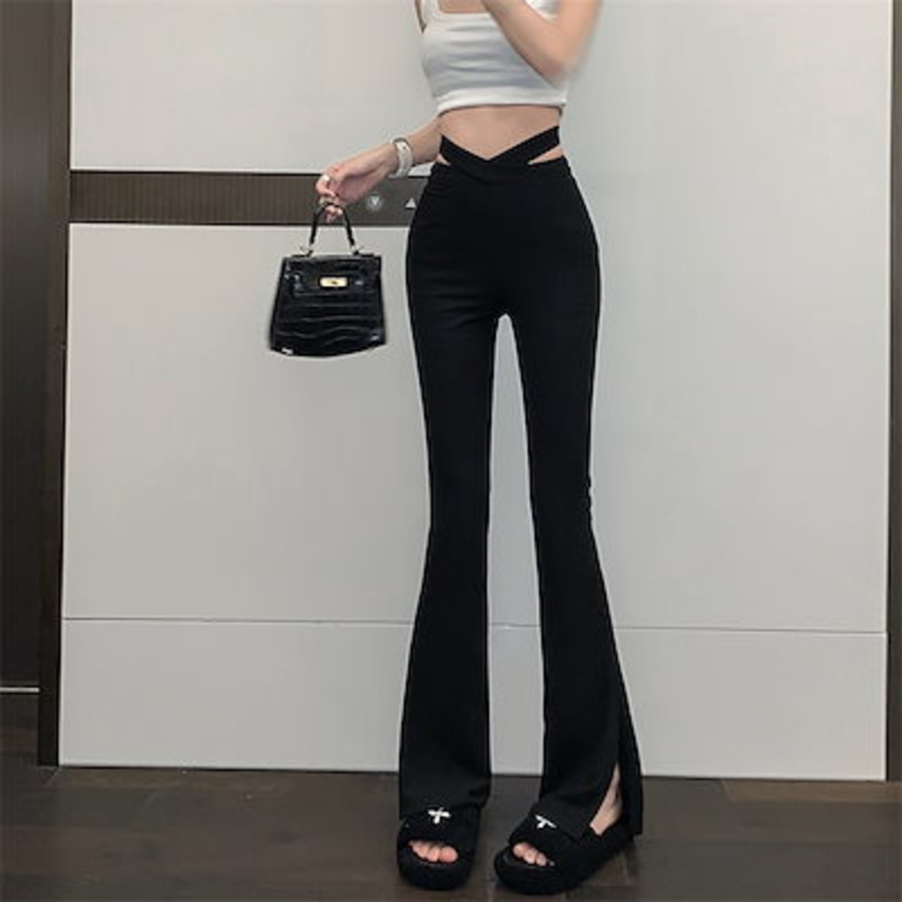 2024 春秋 パンツ モップパンツ ロングパンツ ワイド ハイウエスト 脚長効果 美脚効果 細見え 夏 カジュアルフィット かわいい 韓国系ファッションサイド レディース お出かけ