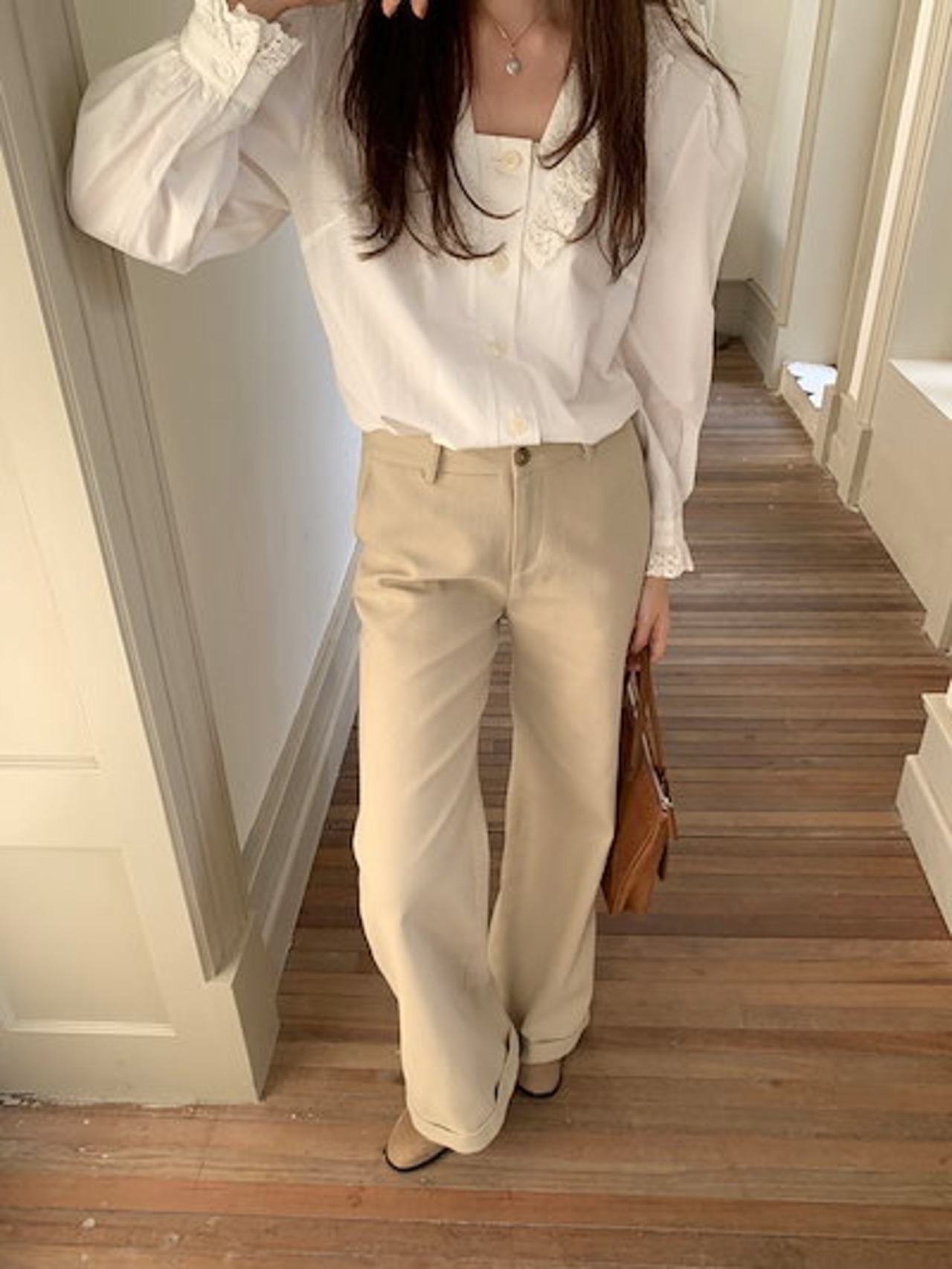 2024秋冬トップス シャツ 長袖 レース スクエアネック ゆったり 秋 白 ホワイト おしゃれ かわいい 韓国ファッション レディース お出かけ