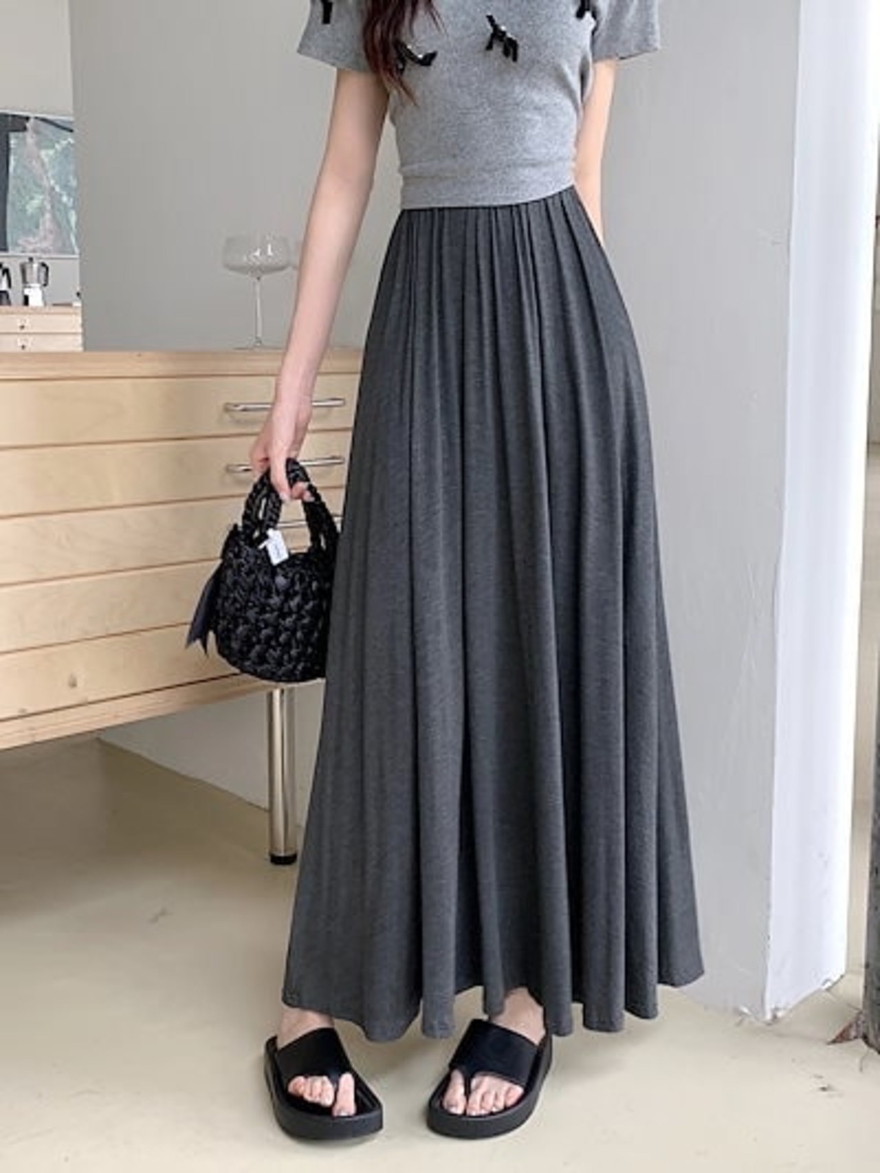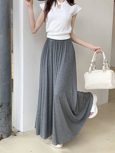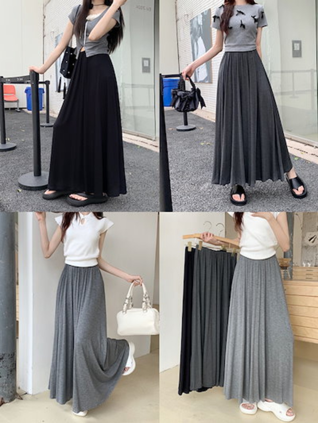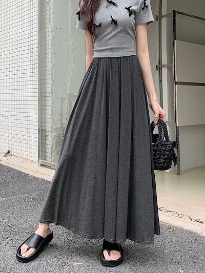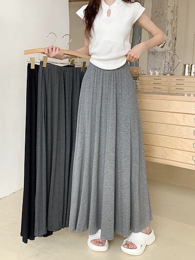 2024 春秋 スカート ロング丈 ハイウエスト 美脚効果 脚長効果 細見え 春 白 黒 韓国系ファッション レディース かわいい おしゃれ カジュアル お出かけ