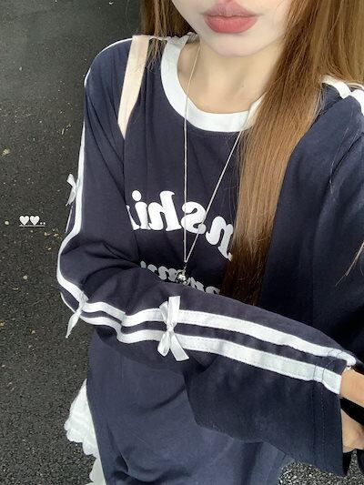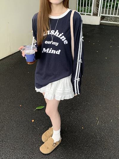 2024 秋冬 tシャツ レタープリント ロンt サイドトップス 長袖 レトロ 韓国ファッション系袖 レディース 大人可愛い シルエット サイズ