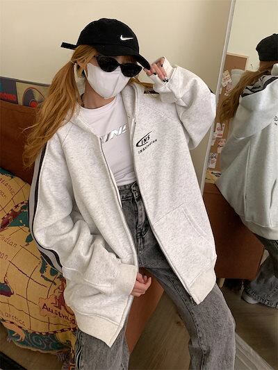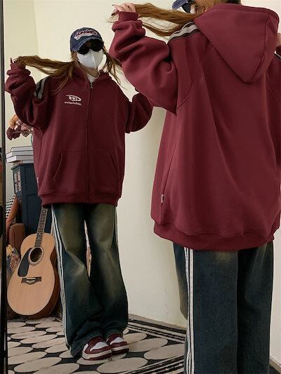 2024 秋 韓国 かわいい レディース フード付き アウター ブルゾン お出かけ 長袖セクシーシルエットトップスサイド冬カジュアルファッション系サイズお出かけフル丈トラック