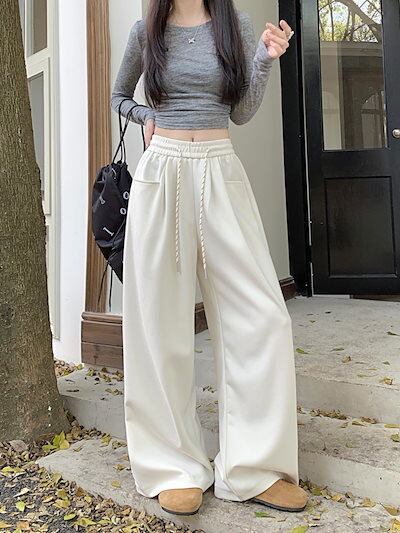 2024 秋 パンツ ロング丈 ハイウエスト ズボン 美脚効果 脚長効果 細見えサイド 冬 春 おしゃれ かわいい 韓国系ファッション レディース お出かけ トラック