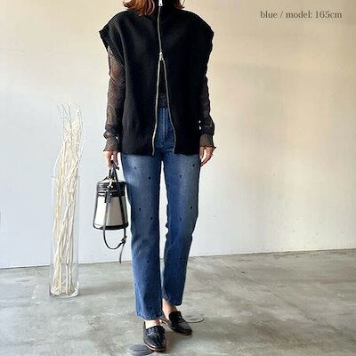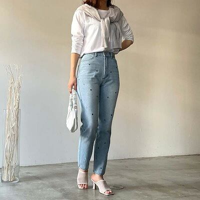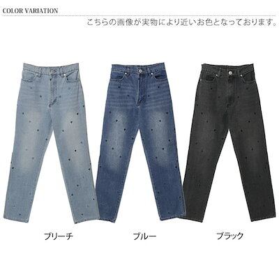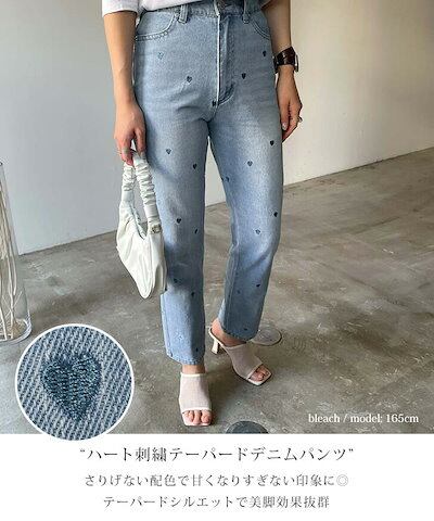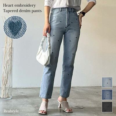 リアル スタイルハート刺繍テーパードデニムパンツ レディース ボトムス デニムパンツ テーパードパンツ デニム ハート 刺繍 ハート刺繍 個性的 おしゃれ かわいい カジュアル シンプル キュート ガーリー ジーパン
