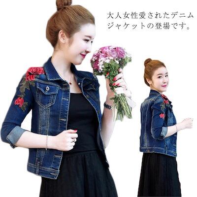 刺繍デニムジャケット Gジャン レディース デニムジャケット ショート丈 ジャケット デニム トップス 刺繍 花柄 長袖 秋 春 大きサイズ