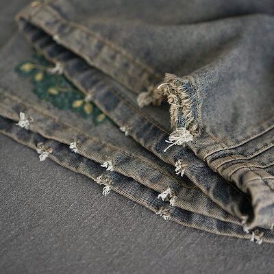 花柄刺繍 サルエルパンツ デニムパンツ ワイドパンツ バギーパンツ ガウチョパンツ レディース ウエ