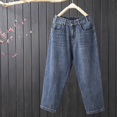 サルエルパンツデニムパンツレディース刺繍8分丈Gパン大きいサイズゆったりカジュアルガウチョワイドおしゃれ体型カバー