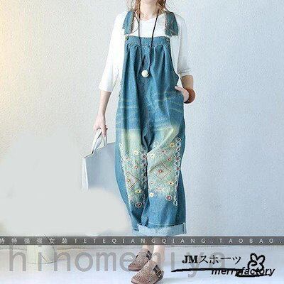 【NEWカラー追加】刺繍 デニムワンピース デニムパンツ レディース ワイドパンツ オーバーオール サロペット 大きいサイズ ロールアップ ベイカー デニムパンツ 夏 通販