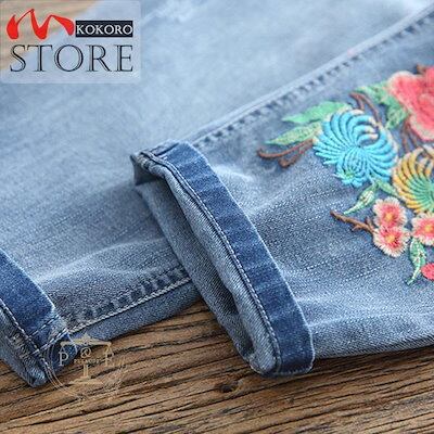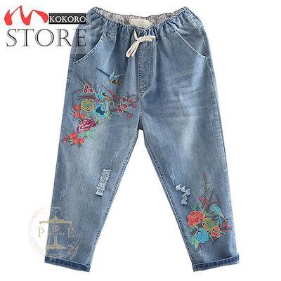 『目玉新商品』デニムパンツ レディース 春夏 刺繍 ゴムウエスト ワイドパンツ ジーンズ ゆったり ボトムス 新作 2024 おしゃれ