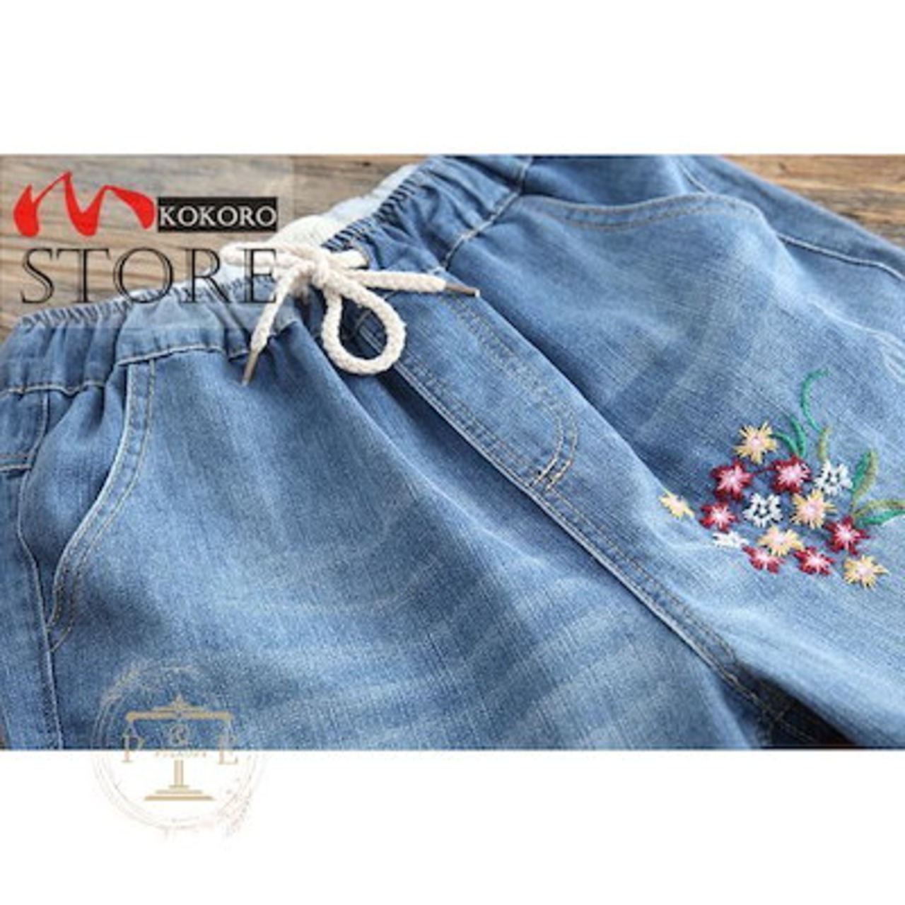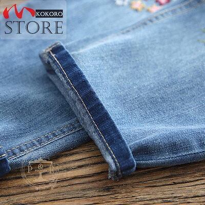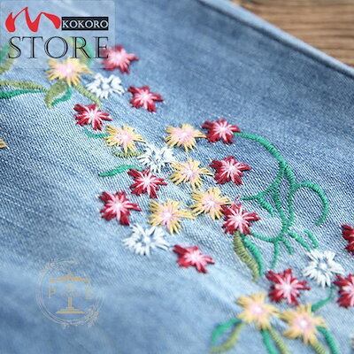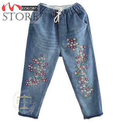 最新の製品 デニムパンツ レディース 春夏 花柄刺繍 ゴムウエスト 七分丈パンツ ジーンズ ゆったり ハロンパンツ 大きいサイズ