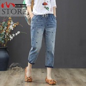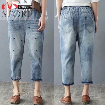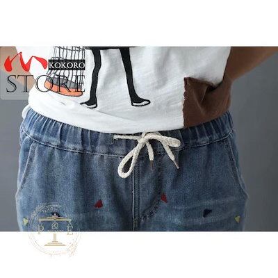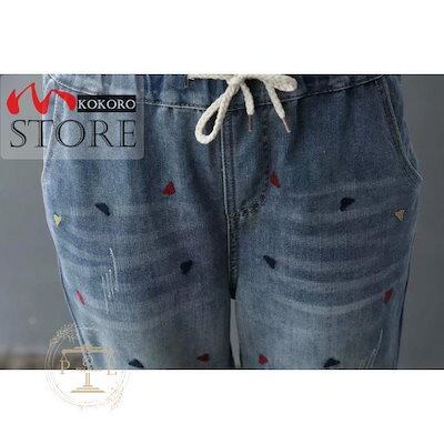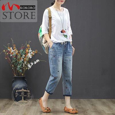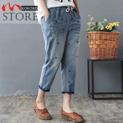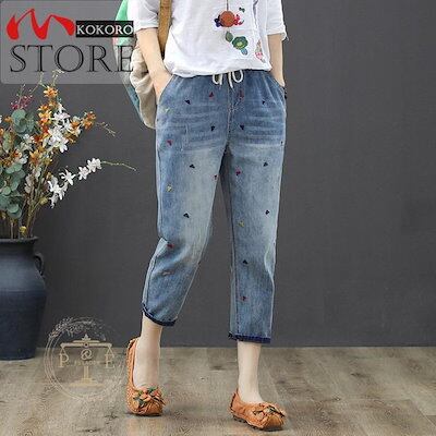 【目玉商品〜超人気】デニムパンツ レディース 春 七分丈パンツ ボトムス おしゃれ ワイドパンツ 刺繍 ゆったり ジーンズ 大きいサイズ