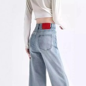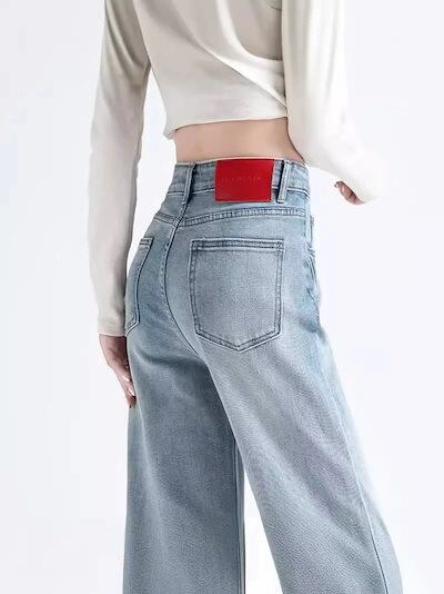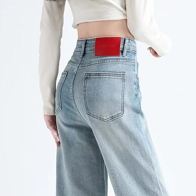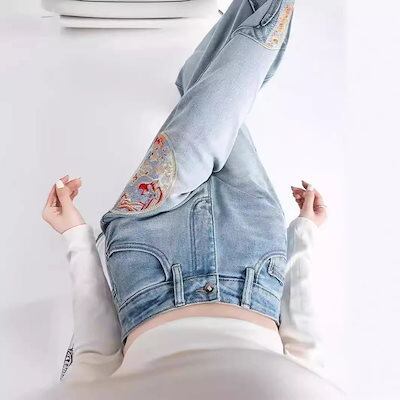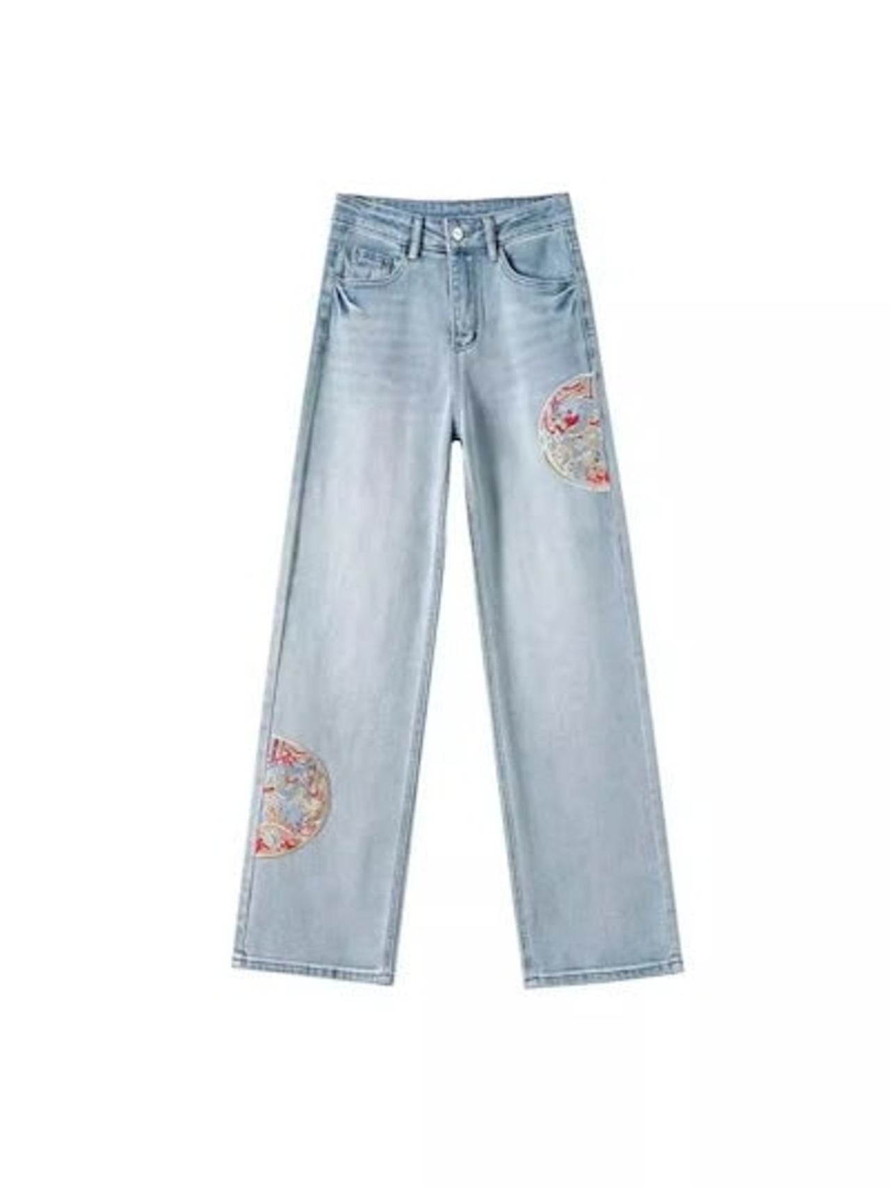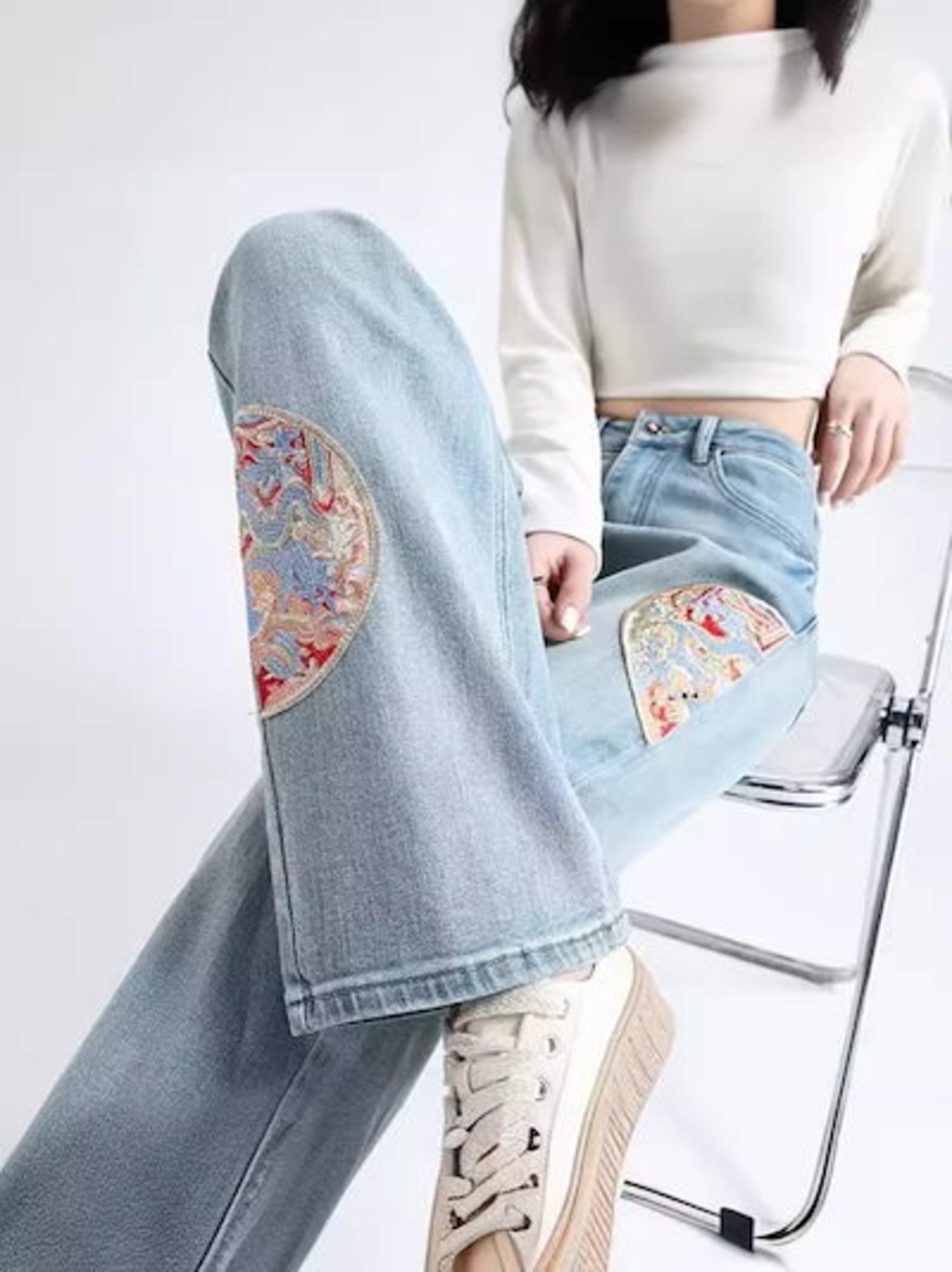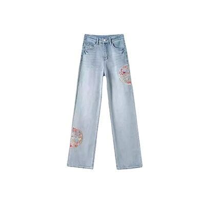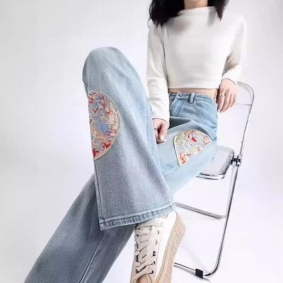 2024 春秋夏用女性用ストレートジーンズ痩身ヒップアップドレープ刺繍レトロナショナルスタイル