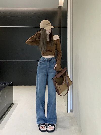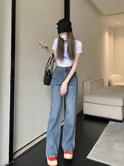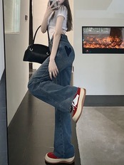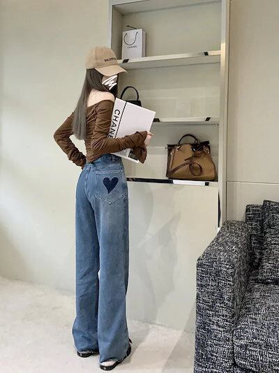 デニムパンツ春夏新モデル愛心刺繍広脚モップパンツジーパン高腰細身パンツ ハイ スラックスパンツワイドパンツ デニムボトムス スキニーパンツひんやりボトムス