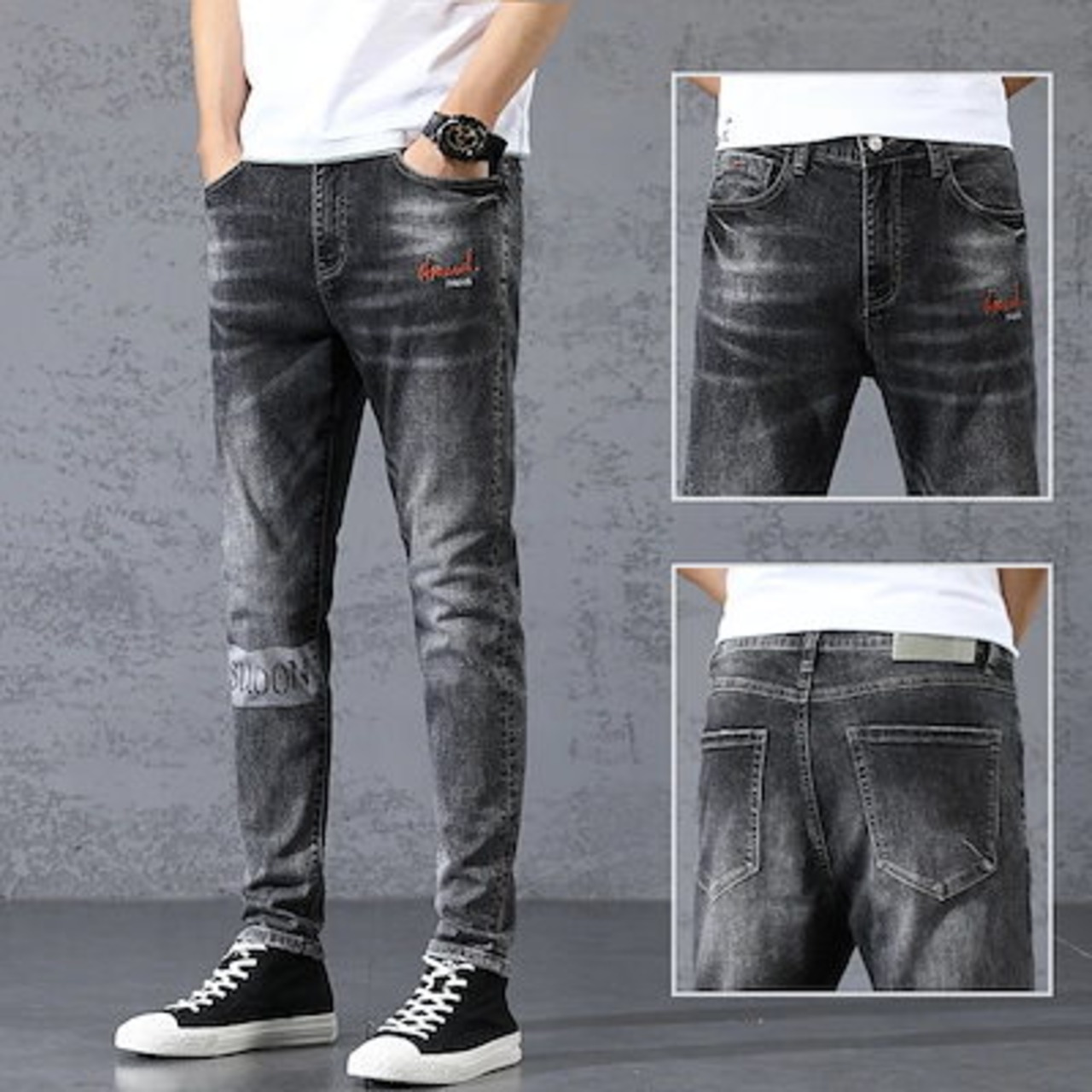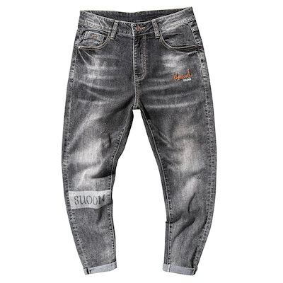 新作刺繍ジーンズメンズ韓国版自家栽培ストレッチパンツヤングガイカジュアルロングパンツ