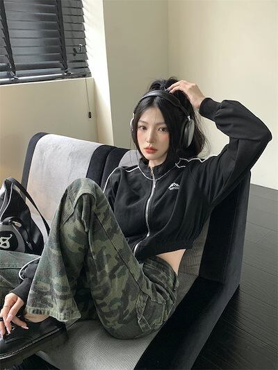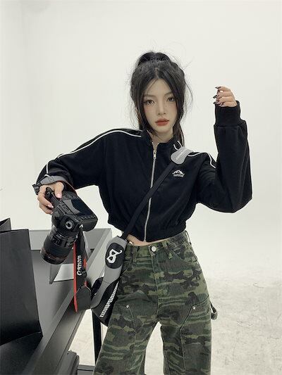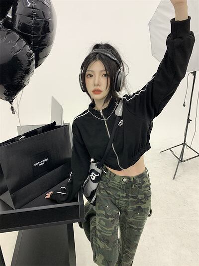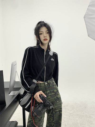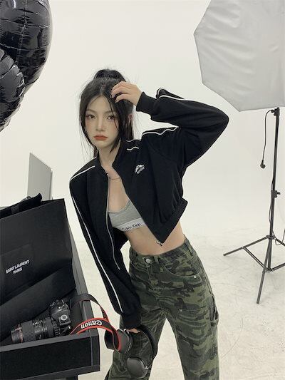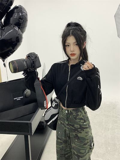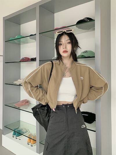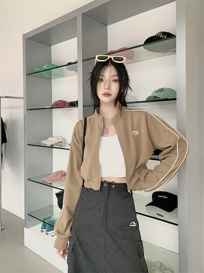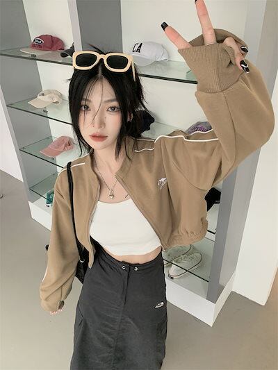 2024 秋 韓国 かわいい レディース アウター ブルゾン お出かけ ブラック ライトカーキ アウター長袖セクシートップスサイド冬カジュアルファッション系お出かけフル丈トラック