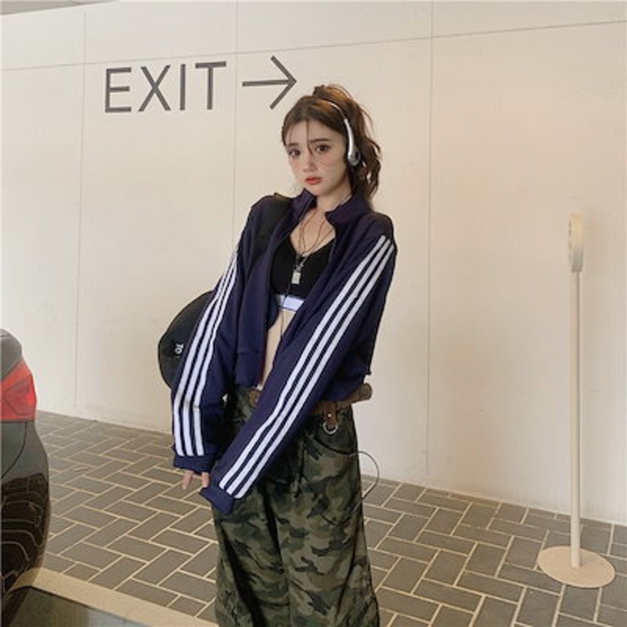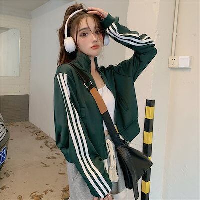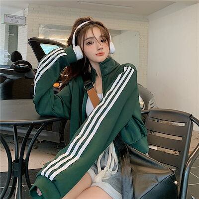 2024 秋 韓国 かわいい レディース アウター ブルゾン お出かけ ブラック ライトカーキ アウター長袖セクシートップスサイド冬カジュアルファッション系お出かけフル丈トラック1
