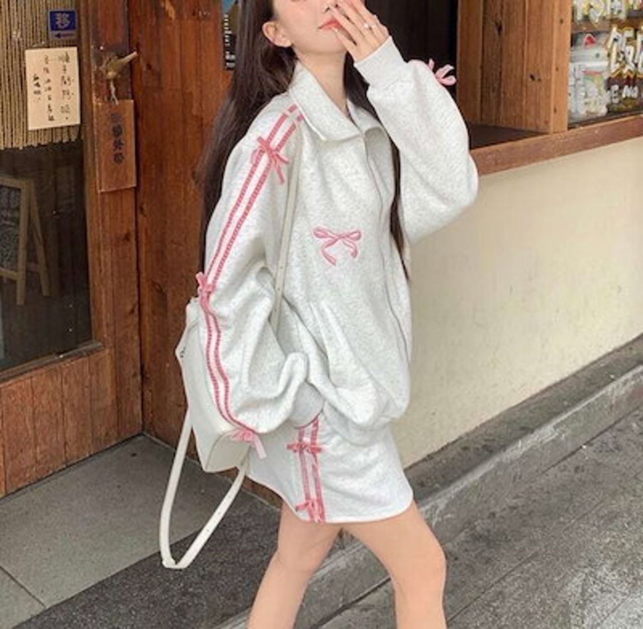 2024 秋 上下2点セット トップス お出かけ 羽織り ショート丈フルラウンドヘム ミニ丈ボトムス ストレート系冬ゆったりレディーススタイルアップワイドお出かけトラック