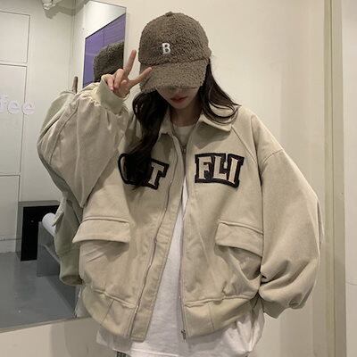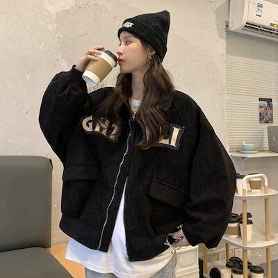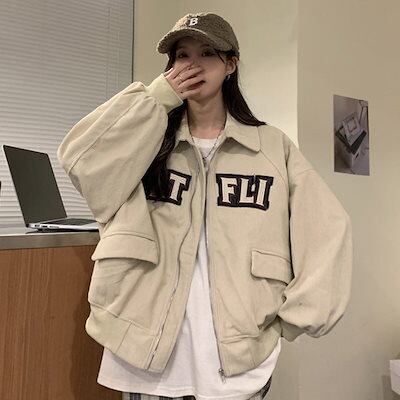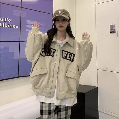 2024 秋冬 トップス セーター 長袖 かわいいラウンドネック フル ブルゾン アウター ストリートルーズ ゆったり カジュアル おしゃれサイズ シルエットファッション系 お出かけトラック