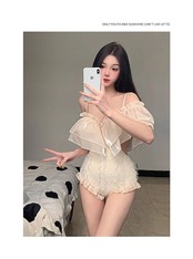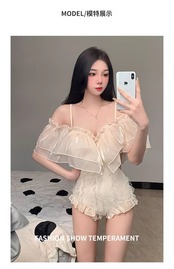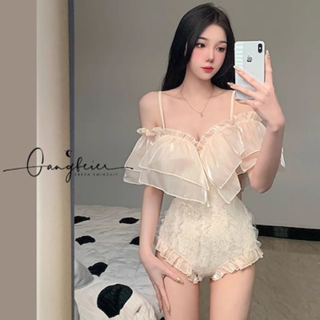 2024 春夏 露出を控えた ファッション ビキニ スイムウェア付き タンキニセパレート スタイルアップ 海プール可愛い海水浴花 大人女子水着 レディース スリーブフレンチ