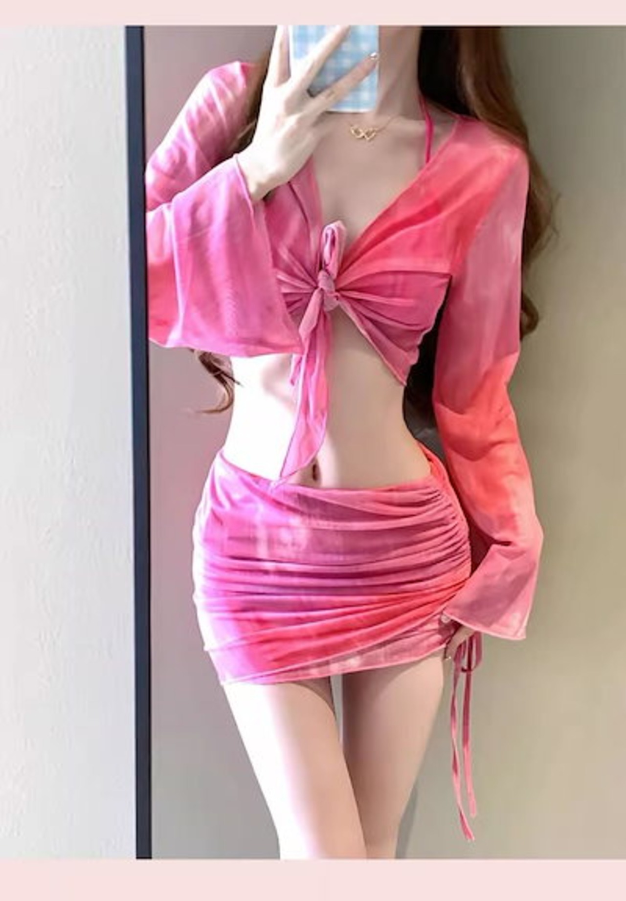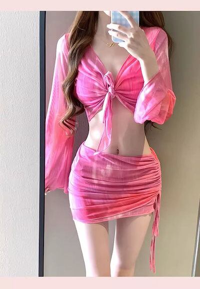 2024 水着 4点セット ビキニ 韓国ビキニ 長袖 ハイウエスト スイムウェア 美脚 脚長 スタイルアップ 大人女子 韓国系ファッション レディース 夏 海